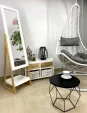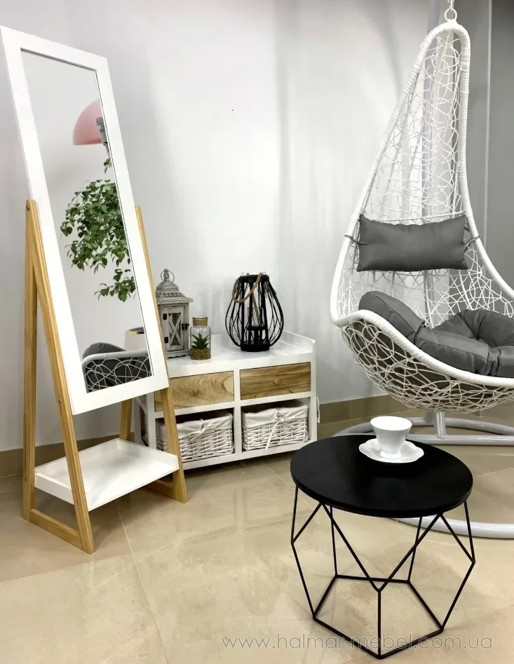 Дзеркало підлогове з полицею CHOMIK 40х150 дерев'яні ніжки - практичний елемент інтер'єру, який порадує шанувальників скандинавського стилю. Ростове дзеркало візуально розширює простір, ідеально підходить для спальні, вбиральні, передпокою. Його конструкція складається із стійкого дерев'яного каркаса, дзеркала в рамі та полички для ключів та інших корисних дрібниць. Дзеркало не займає багато місця, його можна легко переставити.