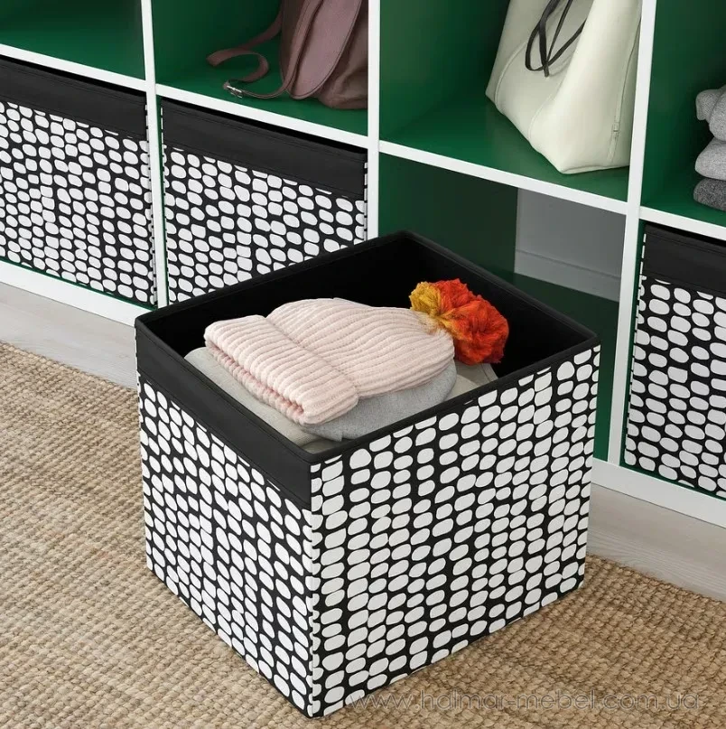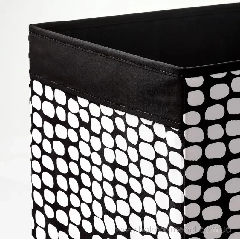 Коробка DRÖNA IKEA чорно-білий - популярний органайзер для організації зберігання та транспортування речей. Коробки Ікеа привертають увагу різноманітністю дизайну, кольорового ряду, що дозволяє створити цікавий проект в інтер'єрі. Ідеально підходять до стелажів серії KALLAX. Поверхні коробки прості у догляді, легко очищаються від пилу, можливих забруднень та будуть служити вам довго.