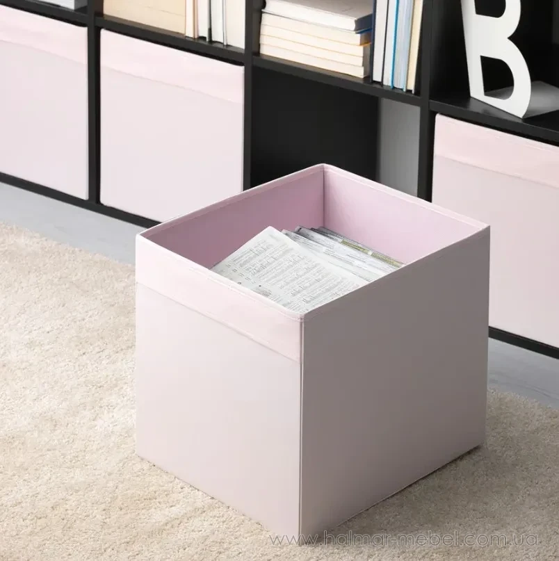 Коробка DRÖNA IKEA світло-рожевий - популярний органайзер для організації зберігання та транспортування речей. Коробки Ікеа привертають увагу різноманітністю дизайну, кольорового ряду, що дозволяє створити цікавий проект в інтер'єрі. Ідеально підходять до стелажів серії KALLAX. Поверхні коробки прості у догляді, легко очищаються від пилу, можливих забруднень та будуть служити вам довго.