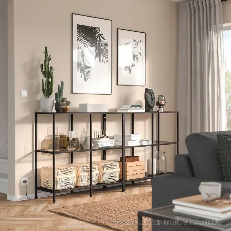 Стелаж VITTSJÖ IKEA - стильний та практичний елемент інтер'єру завдяки функціональності та універсальності. Стелажі дозволяють ефективно використовувати вертикальний простір. Конструкція стелажу VITTSJÖ IKEA виконана зі сталі, полиці із загартованого скла та ДСП.