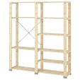 Стелаж 2 секції HEJNE IKEA 154х31х172 см - практичний елемент комори, складу, гаража та інших місць завдяки функціональності та універсальності. Стелажі дозволяють ефективно використовувати вертикальний простір, зберігати велику кількість речей і підтримувати порядок, що особливо важливо у невеликих за площею приміщеннях. Конструкція стелажу HEJNE IKEA виконана з масиву сосни, проста у догляді, його поверхні, при необхідності, можна пофарбувати або покрити морилкою.