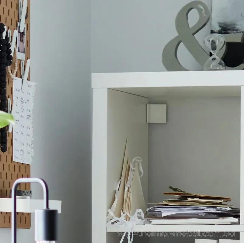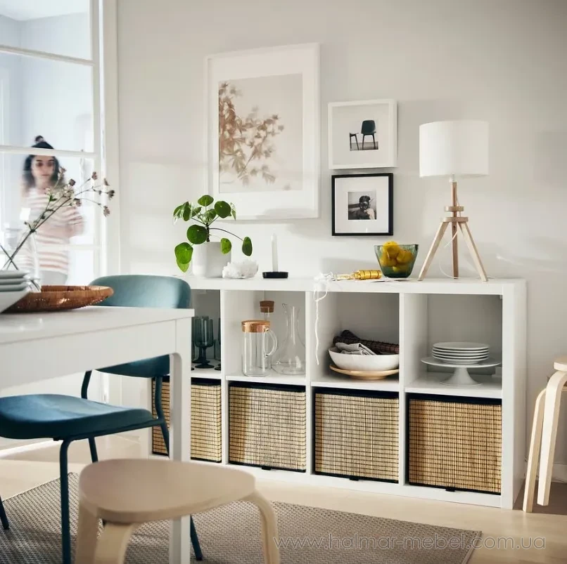 За допомогою спеціальних вставок Kallax, а також декоративних коробок DRÖNA Ikea, ви можете створити цікавий індивідуальний дизайн.