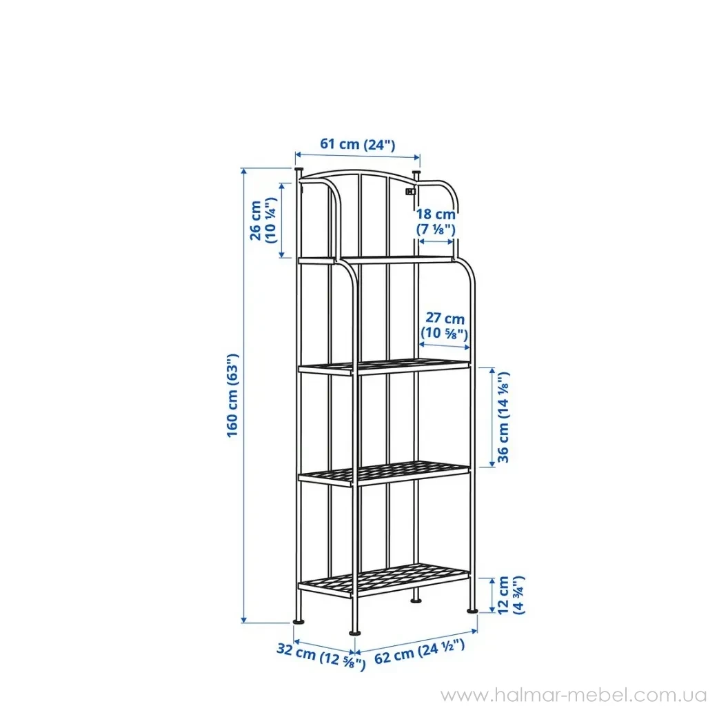Стелаж LÄCKÖ IKEA сірий - популярна модель, яка привертає увагу стильним дизайном, якістю виконання та знайде своє застосування у будь-якому приміщенні. Міцна та надійна конструкція включає сталевий каркас і 4 полиці. Стелаж ідеально підходить для зберігання важких предметів та для приміщень з підвищеним рівнем вологості.