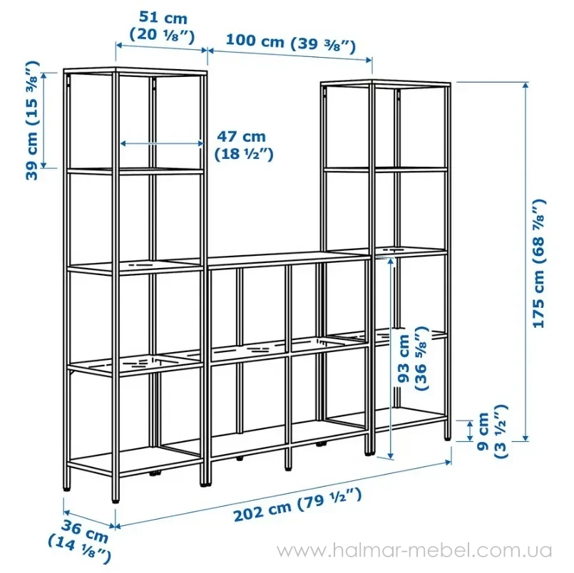 Стелаж VITTSJÖ IKEA 202х36х175 см чорно-коричневий