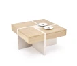 Стіл журнальний Sevilla S Halmar дуб кремона/кашемір - стильна та функціональна модель для сучасного інтер'єру, яка привертає увагу оригінальним дизайном та чудовою якістю виконання. Конструкція столика складається з каркасу кольору кашемір та стільниці квадратної форми. Змістивши сегменти стільниці ви виявите чотири ніші для зберігання корисних дрібниць.