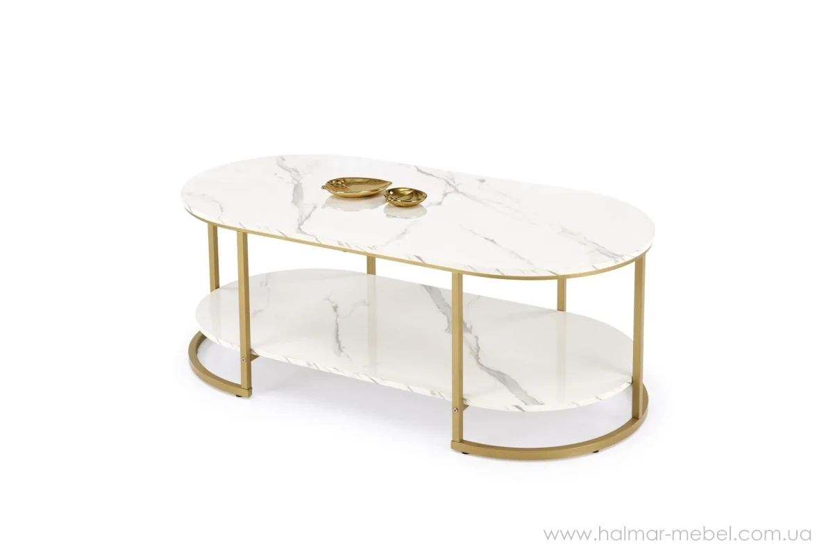 Стіл журнальний KALUA HALMAR білий мармур/золотий