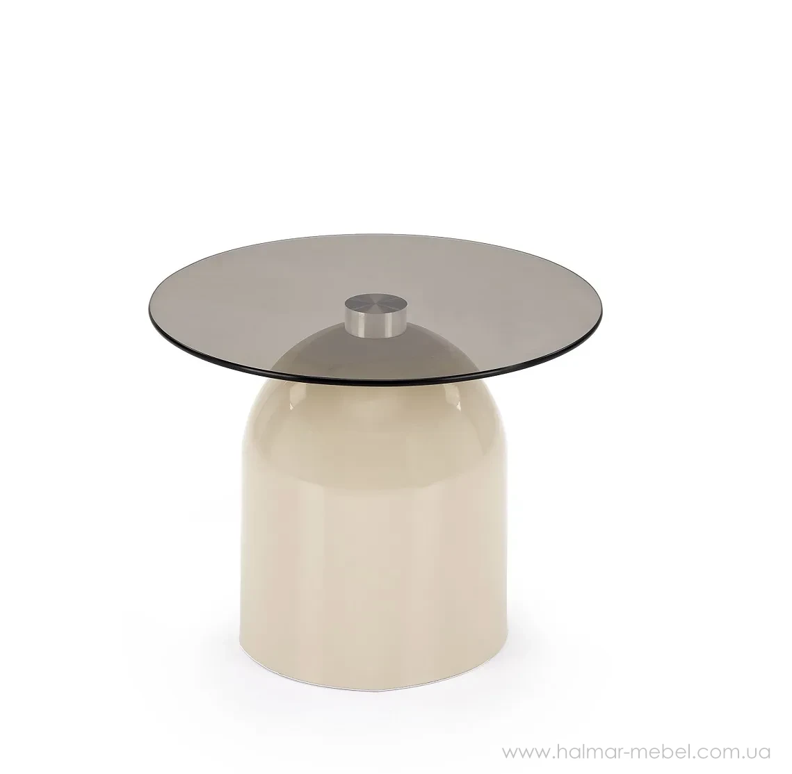 Стіл журнальний STARK S HALMAR димчастий/кашемір - ефектна новинка 2026 року, яка чудово доповнить будь-який сучасний інтер'єр. Конструкція столика складається зі сталевого каркасу в кольорі кашемір та круглої стільниці з димчастого скла.