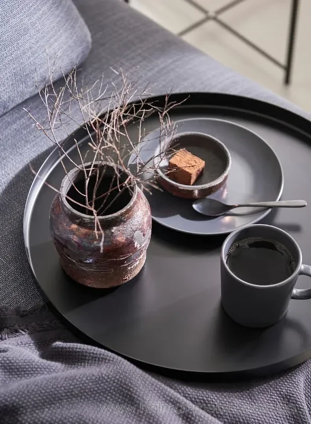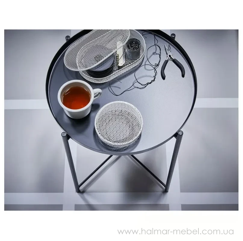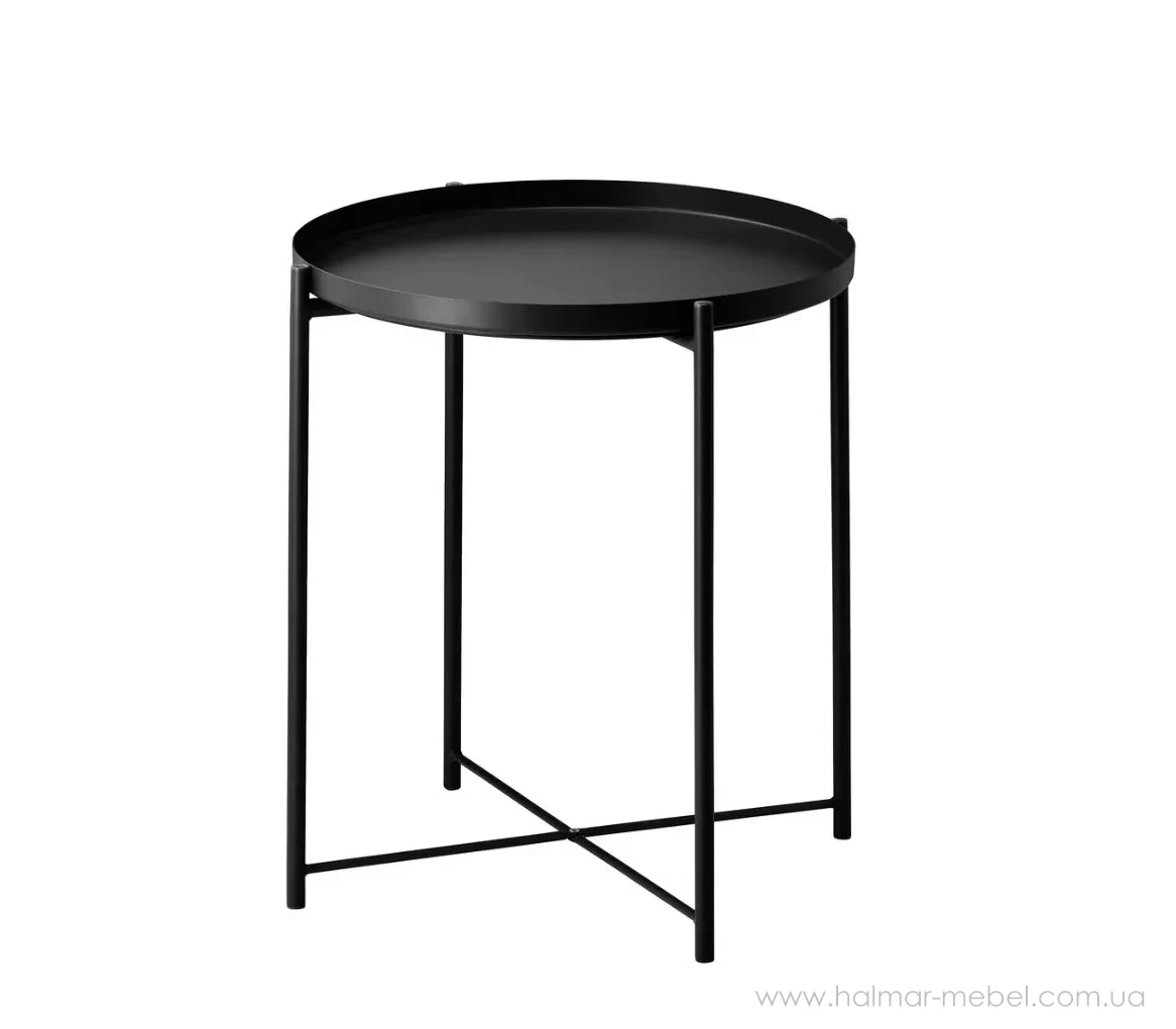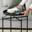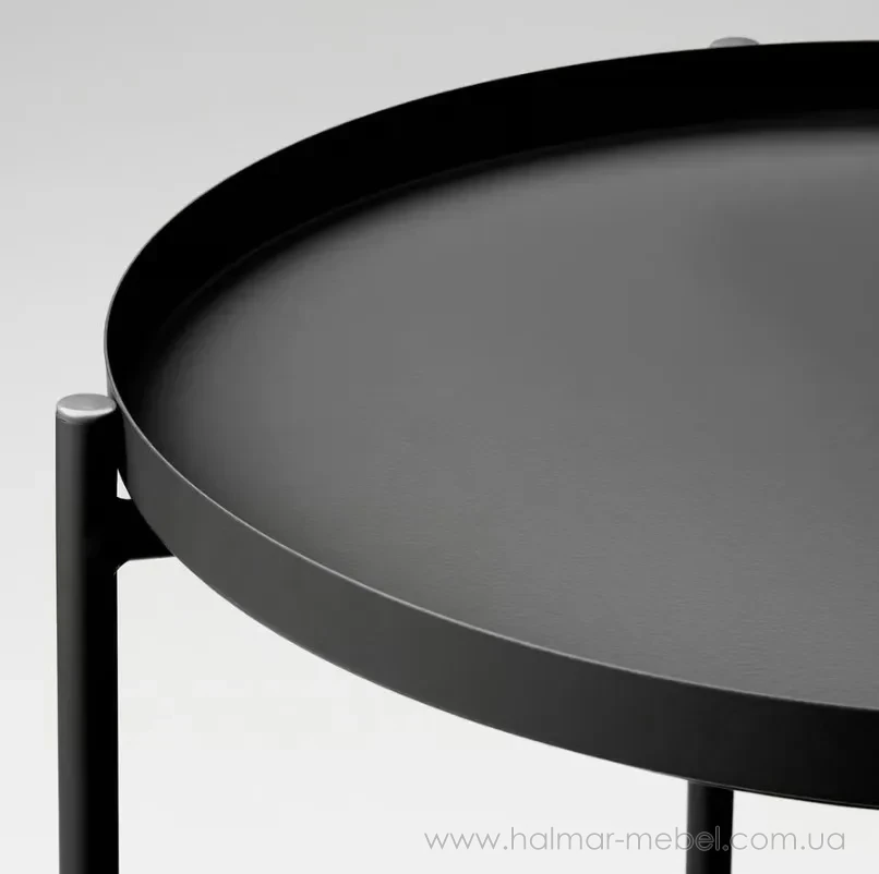Журнальний стіл з підносом GLADOM IKEA чорний - стильна і функціональна модель. Його конструкція складається з каркаса і круглої знімної стільниці, яку можна також використовувати як піднос для сервірування, а високі бортики полегшують переміщення посуду і зменшують ризик його перекидання. Широкий асортимент кольорів моделі дозволяє вибрати оптимальний варіант для вашого інтер'єру.