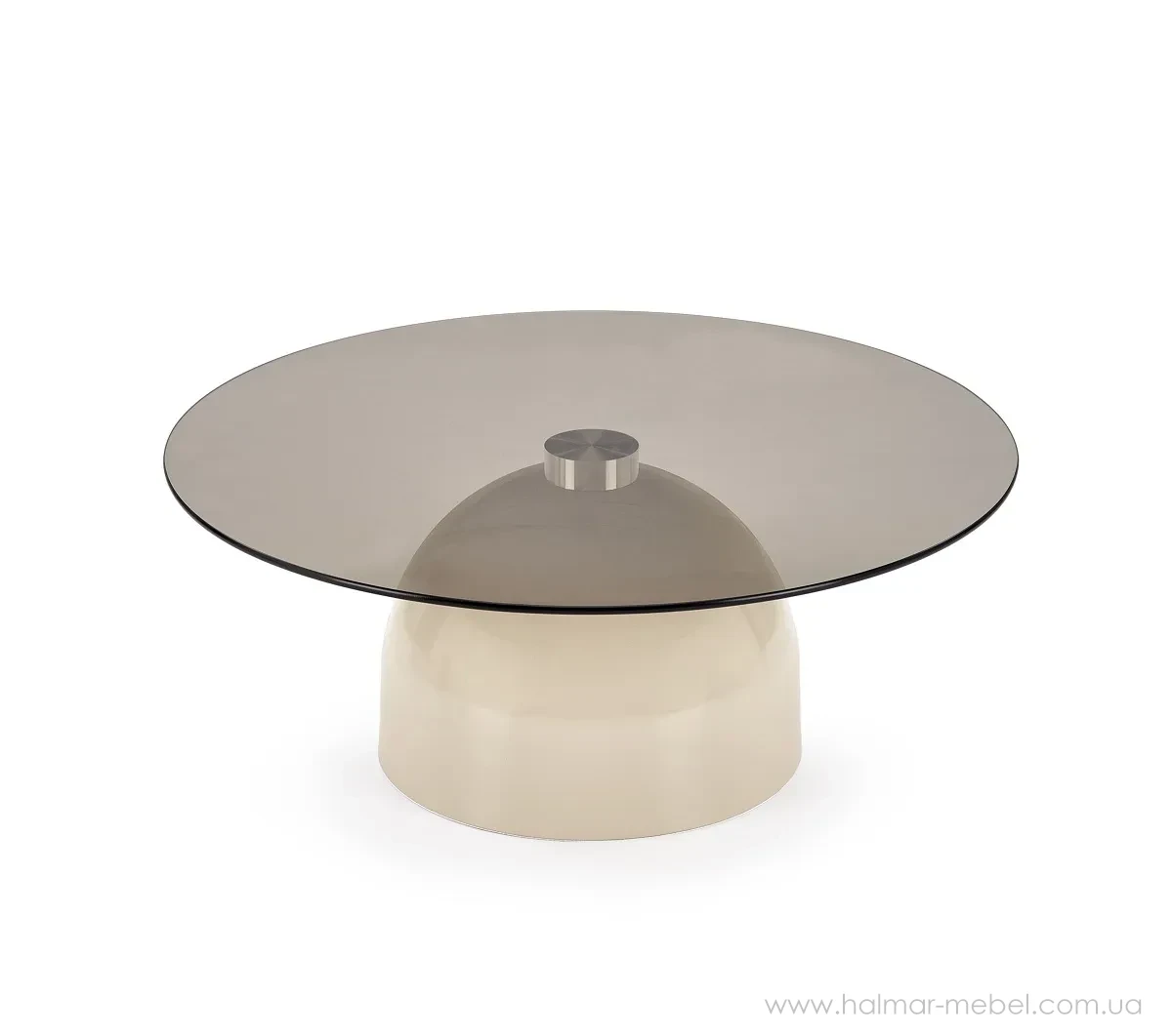 Стіл журнальний STARK HALMAR димчастий/кашемір - ефектна новинка 2026 року, яка чудово доповнить будь-який сучасний інтер'єр. Конструкція столика складається зі сталевого каркасу в кольорі кашемір та круглої стільниці з димчастого скла.