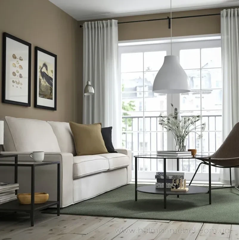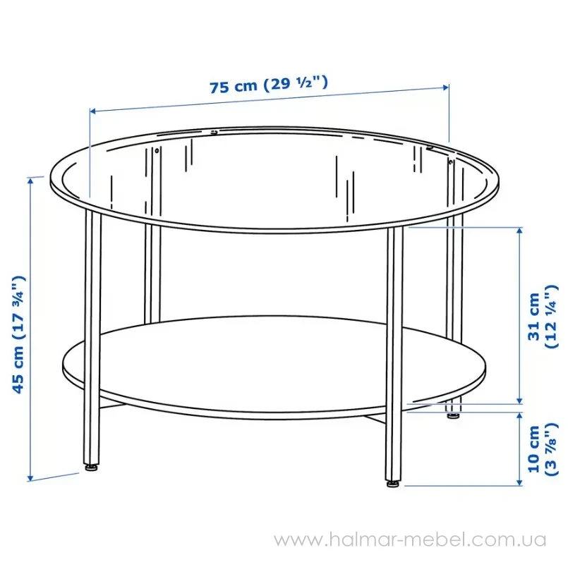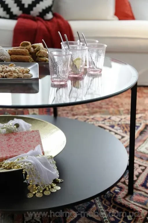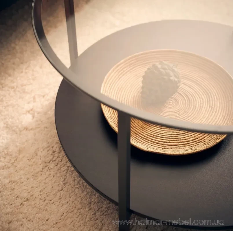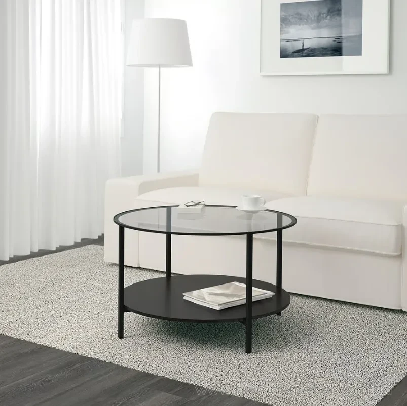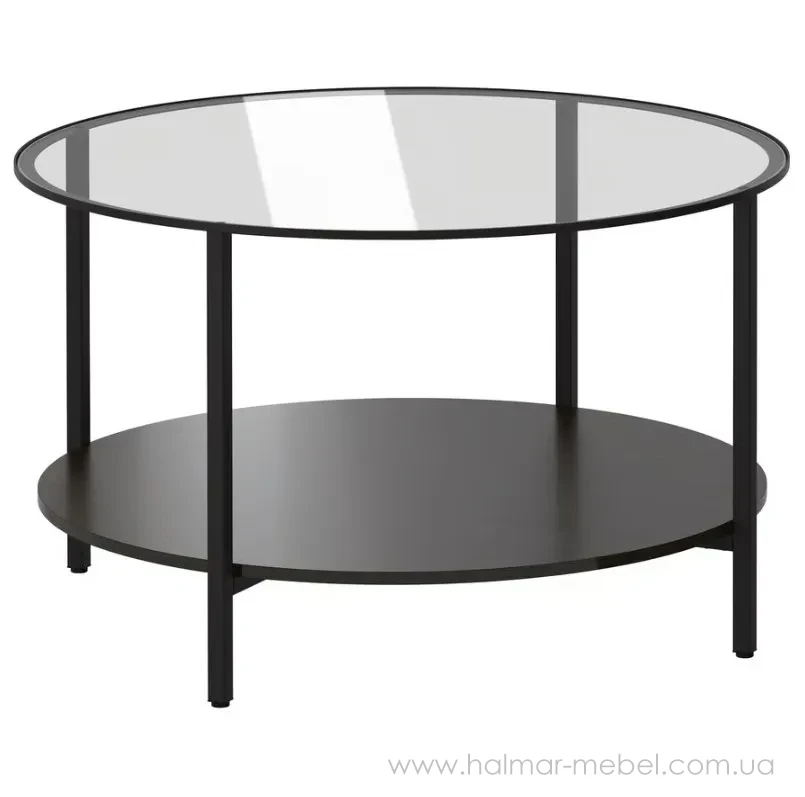 Стіл журнальний VITTSJÖ IKEA чорно-коричневий - стильна та практична модель для сучасного інтер'єру. Конструкція столика складається із сталевого каркасу, круглої стільниці із загартованого скла з профільованим краєм та полицею з ДСП.