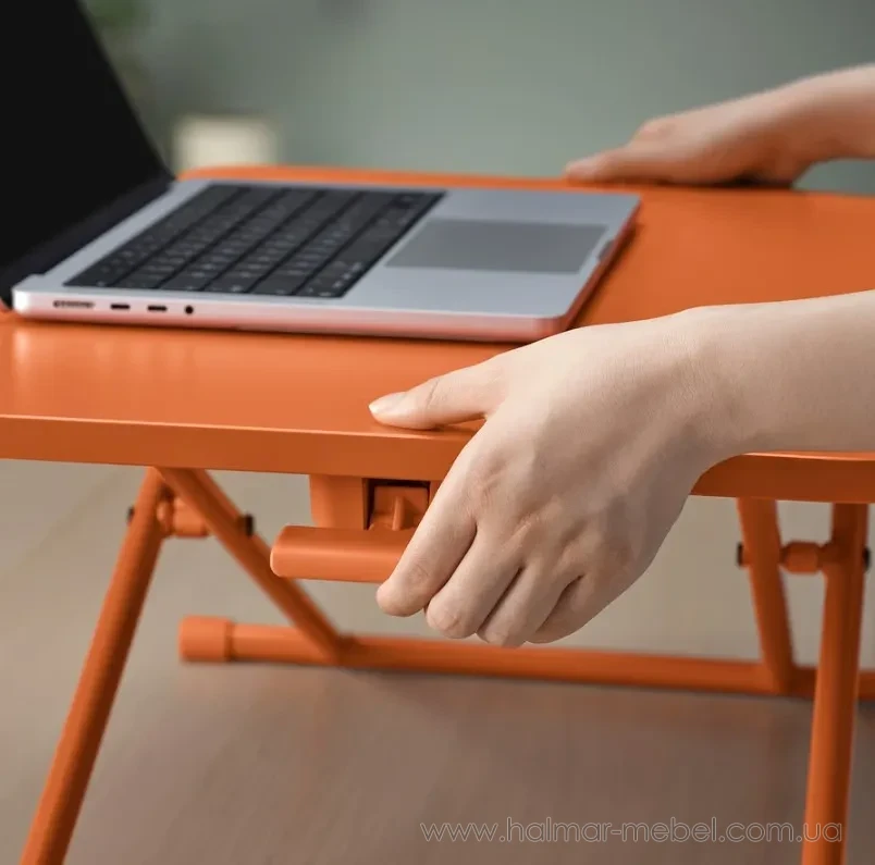 Стенд для ноутбука DUBBLA IKEA помаранчевий - чудове ергономічне рішення для комфортної роботи. Конструкція стенду складається зі стільниці та сталевого каркасу, висота якого регулюється в діапазоні від 18 до 41 см, що дозволяє встановити ноутбук чи монітор на оптимально зручній для вас висоті. Стенд для ноутбука простий і надійний в експлуатації, завдяки складаній конструкції не займає багато місця і може зберігатися на полиці стелажу.