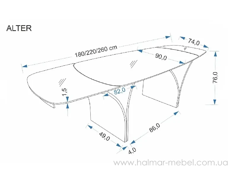 Стіл обідній розкладний ALTER HALMAR бежевий мармур - ефектна новинка 2026 року, яка чудово доповнить інтер'єр сучасної вітальні. Конструкція складається з чорного каркасу оригінальної форми та керамічної стільниці в кольорі бежевого мармуру. В розкладеному вигляді довжина стільниці 260 см та дозволяє розмістити 12 осіб.