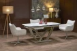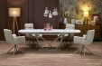 Стіл обідній розкладний BENJAMIN HALMAR - елегантна новинка 2026 року, яка гідно доповнить інтер'єр сучасної вітальні. Конструкція складається зі сталевого каркасу оригінальної форми та керамічної стільниці в кольорі бежевого мармуру. В розкладеному вигляді довжина стільниці 240 см та дозволяє розмістити 10 осіб.