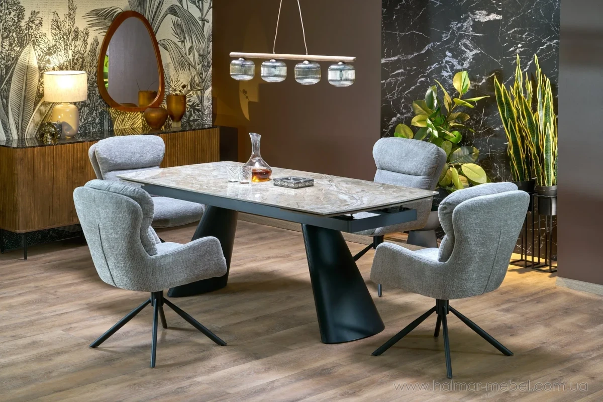 Стіл обідній розкладний VINCE HALMAR коричневий мармур - ефектна новинка 2026 року, яка чудово доповнить інтер'єр сучасної вітальні. Конструкція складається з чорного каркасу та керамічної стільниці в кольорі коричневого мармуру. В розкладеному вигляді довжина стільниці 238 см та дозволяє розмістити 8 осіб.