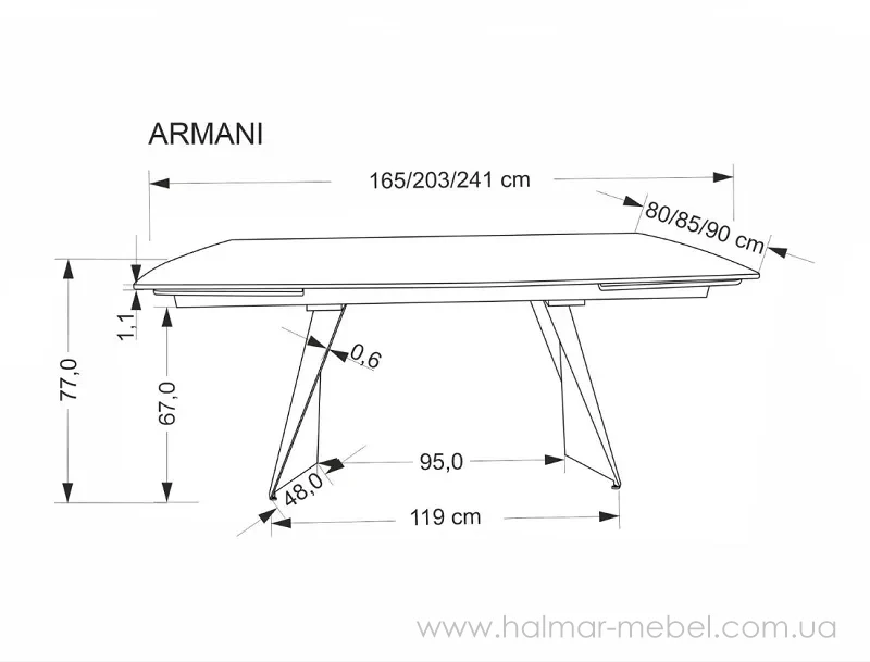 Стіл обідній розкладний ARMANI HALMAR травертин/кашемір – елегантна версія популярної моделі для сучасної обідньої зони. Модель привертає увагу стильним та якісним виконанням. Конструкція столу Armani Halmar складається із сталевого каркасу та прямокутної стільниці кольору світлого каменю. Її довжина у розкладеному положенні становить 241 см і дозволяє розмістити 10 осіб.