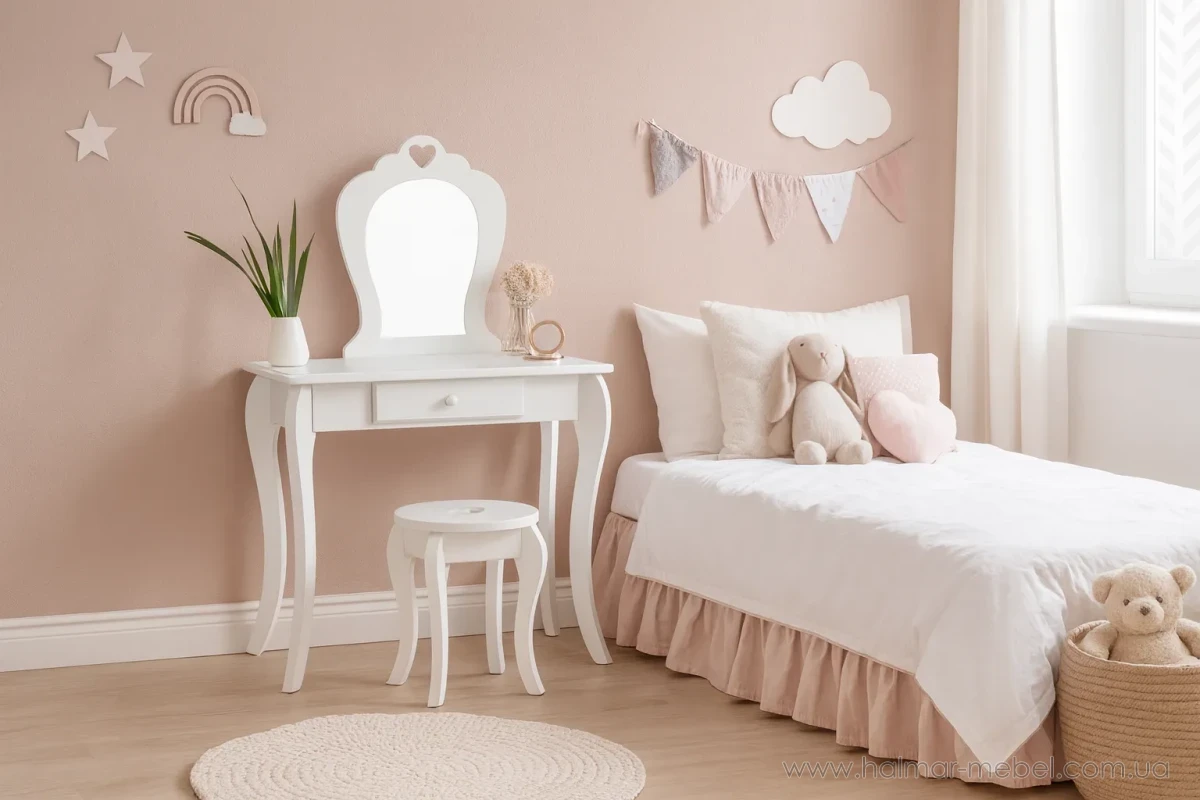 Дитячий туалетний стіл із дзеркалом та табуретом CHOMIK білий