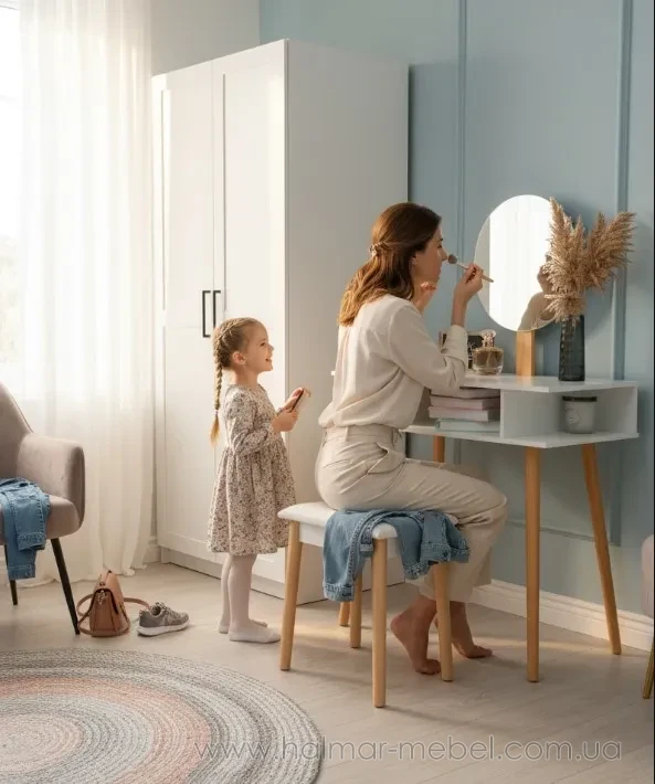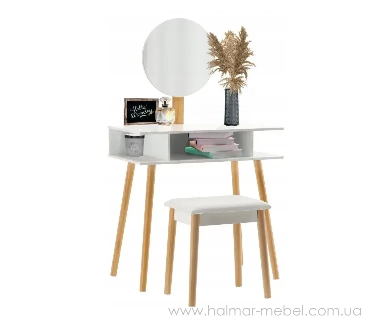 Стіл для макіяжу з дзеркалом та табуретом CHOMIK білий