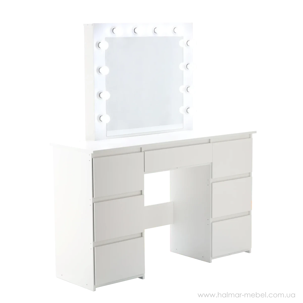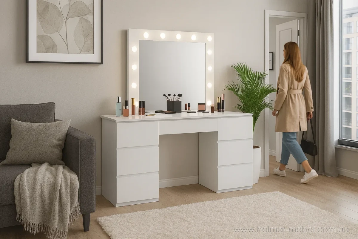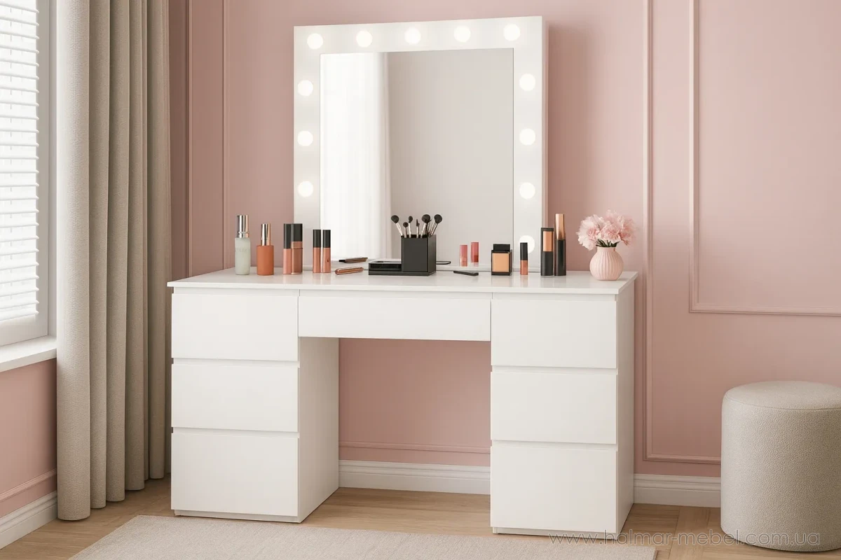 Стіл макіяжний з дзеркалом з підсвічуванням та 2 тумбами CHOMIK білий