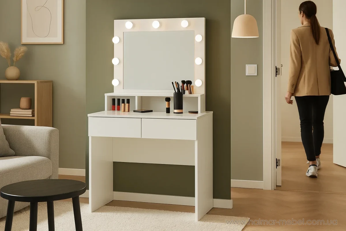 Стіл макіяжний з дзеркалом з підсвічуванням та відділеннями CHOMIK білий