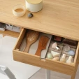 Стіл туалетний NORDKISA IKEA бамбук - проста та надійна модель для спальні або передпокою. Конструкція складається з корпусу зі стільницею, висувної шухляди, відкритої ніші та ніжок. Столик не займає багато місця, а разом з іншими елементами серії NORDKISA IKEA дозволяє цікаво оформити інтер'єр.