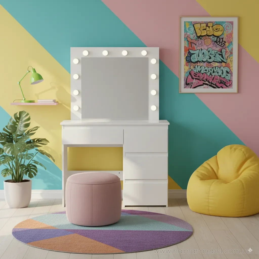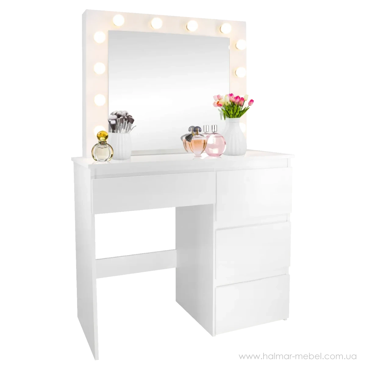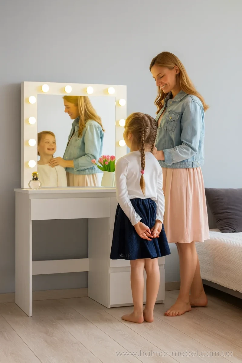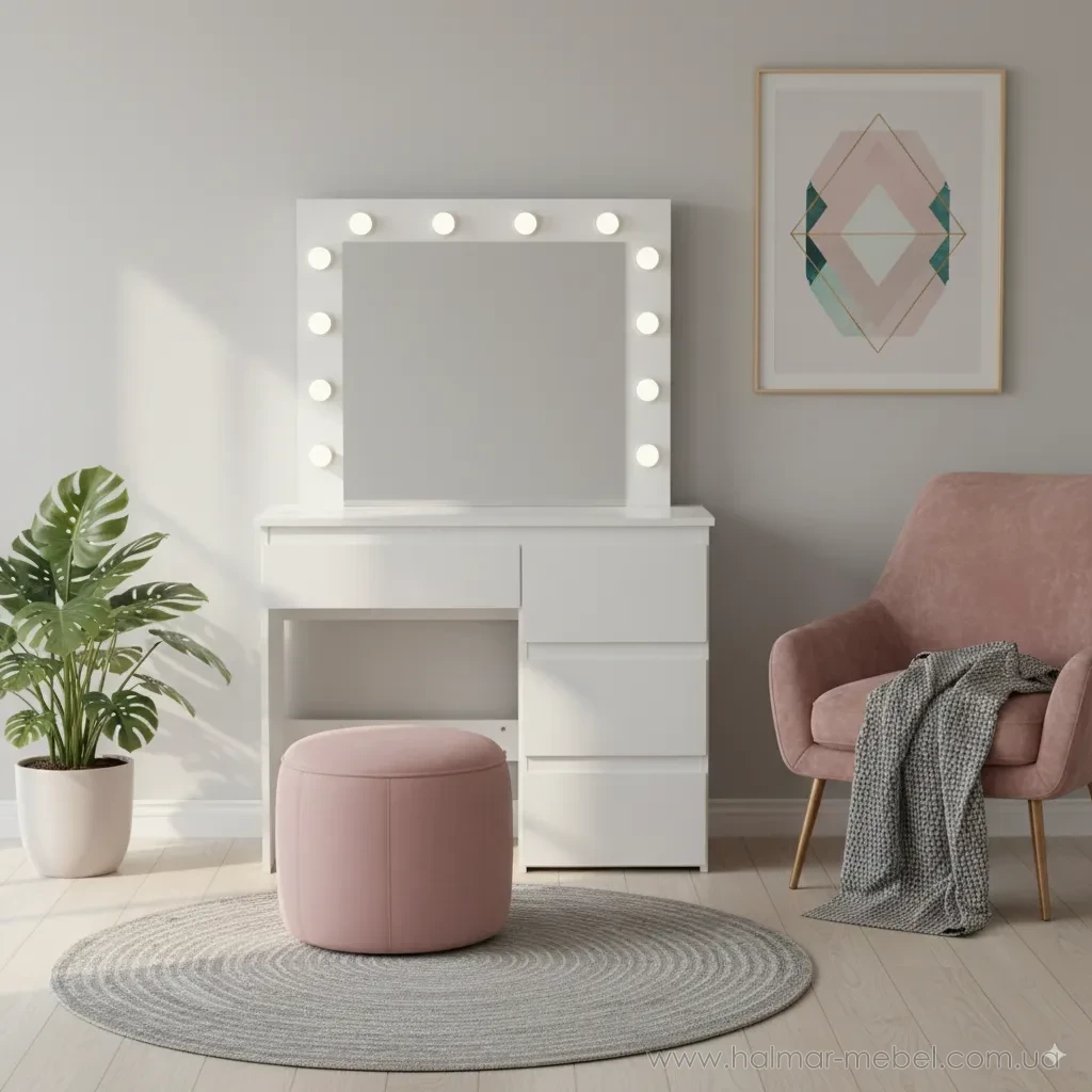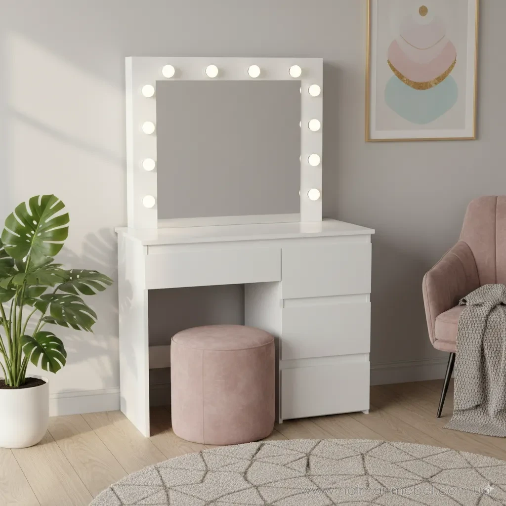 Туалетний стіл з підсвічуванням та шухлядами CHOMIK білий