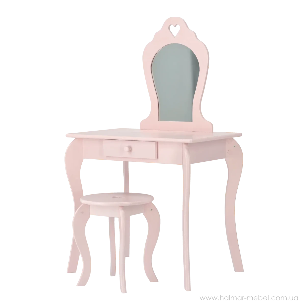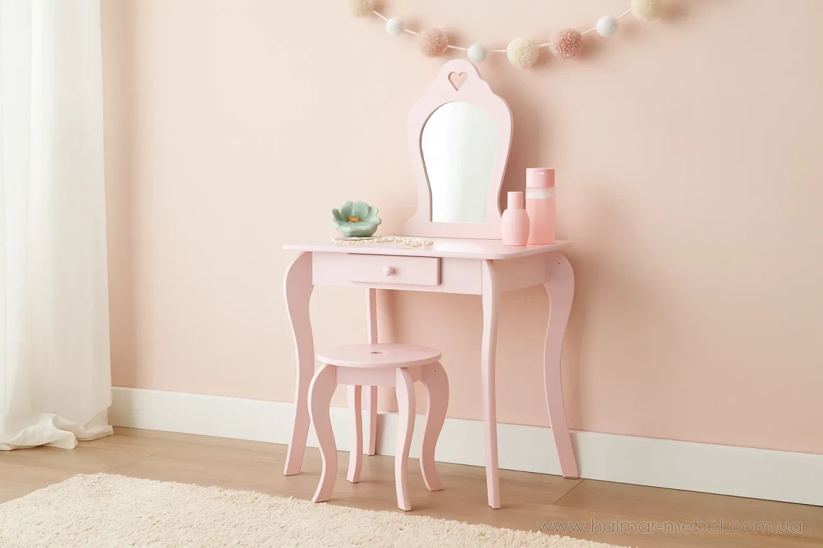 Туалетний стіл дитячий з дзеркалом і табуретом CHOMIK рожевий