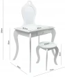 У комплект входить зручний табурет та стійкий столик, конструкція якого складається з корпусу з шухлядкою для корисних дрібниць, дзеркала в рамі та витончених ніжок.