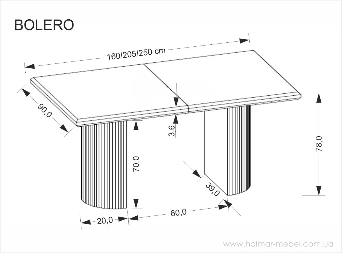 Стіл обідній розсувний BOLERO HALMAR натуральний/чорний дуб - ефектна новинка 2025 року, яка вигідно доповнить інтер'єр сучасної вітальні або їдальні. Модель привертає увагу цікавим дизайном та чудовою якістю виконання. Конструкція столу Bolero Halmar складається із сталевого каркаса оригінальної форми і стільниці зі шпонованої МДФ, довжина якої в розсунутому положенні становить 250 см і дозволяє розмістити 8 персон.