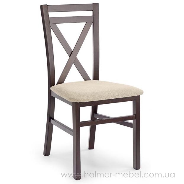 Дерев'яний стілець DARIUSZ HALMAR (горіх) – м'який стілець польської компанії Halmar (Халмар). Каркас виконаний із масиву натурального дерева у кольорі темний горіх. Сидіння обтягнуте м'якою і приємною на дотик тканиною бежевого кольору.