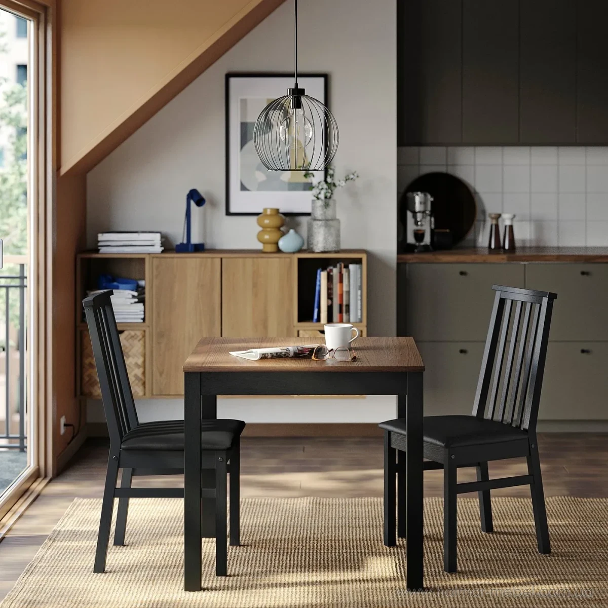Стілець ÅLHULT IKEA чорний – ефектна новинка для домашнього інтер'єру. Конструкція виконана з масиву сосни чорного кольору, висока спинка і м'яке сидіння забезпечують комфорт використання.
