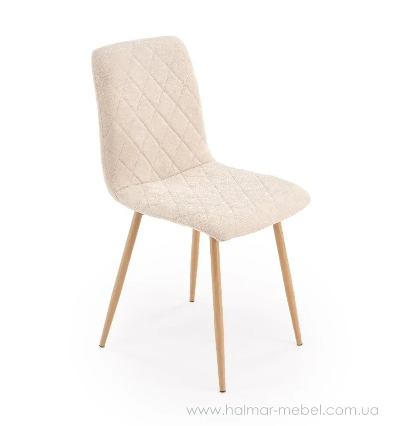 Стілець K525 WDF Halmar бежевий /натуральний – нова версія популярної обідньої моделі. Конструкція стільця складається із сталевого каркасу натурального кольору, м'якого сидіння та зручної спинки з оббивкою з тканини бежевого кольору.