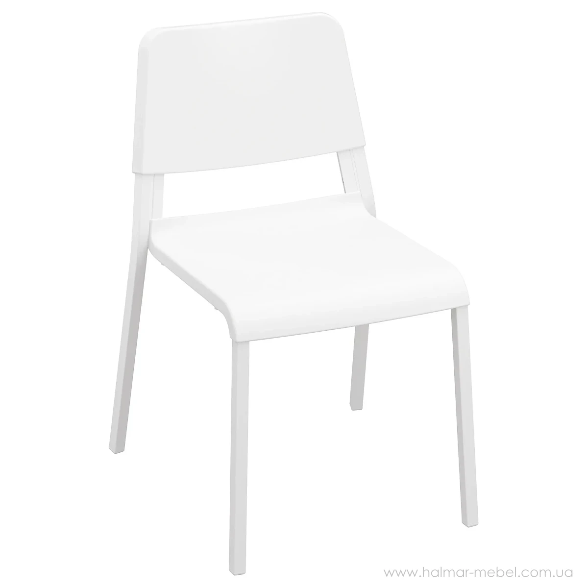 Стілець TEODORES IKEA білий - приваблива та зручна модель для дому та комерційних закладів. Конструкція стільця складаєтся зі сталевого каркасу та жорсткого сидіння і спинки з поліпропілену. Поверхні прості у догляді, легко очищуються від бруду та пилу. Для зберігання та транспортування стільці можна ставити один на одного (максимум 6 штук).