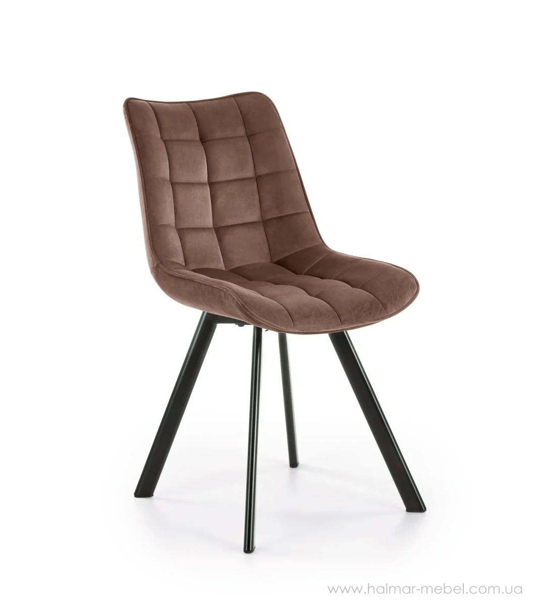 Стілець K332 HALMAR мокка/чорний - нова кольорова версія популярної моделі для домашнього та комерційного інтер'єру. Конструкція стільця складається з сталевого каркасу та м'якого сидіння з оксамитовою оббивкою BLUVEL 38 кольору мокка.