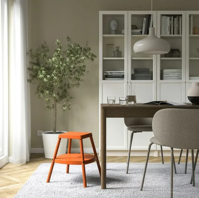 Табурет зі сходинкою HADDARP IKEA помаранчевий - практичний та надійний предмет меблів, який можна використовувати для сидіння, а також як пристосування для полегшення домашніх справ. Конструкція табурету складається із сталевого каркасу та двох сходинок із поліпропілену.