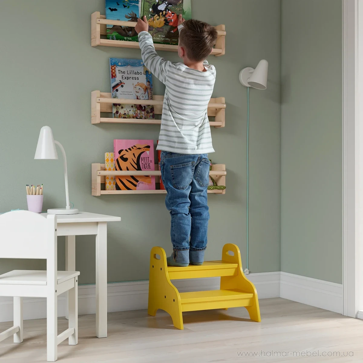 Табурет дитячий зі сходинкою TROGEN IKEA жовтий - привабливий та надійний предмет меблів, який можна використовувати для сидіння, а також як пристосування для полегшення доступу до необхідних речей. Конструкція табурету складається з дерев'яного каркасу та 2-х сходинок.