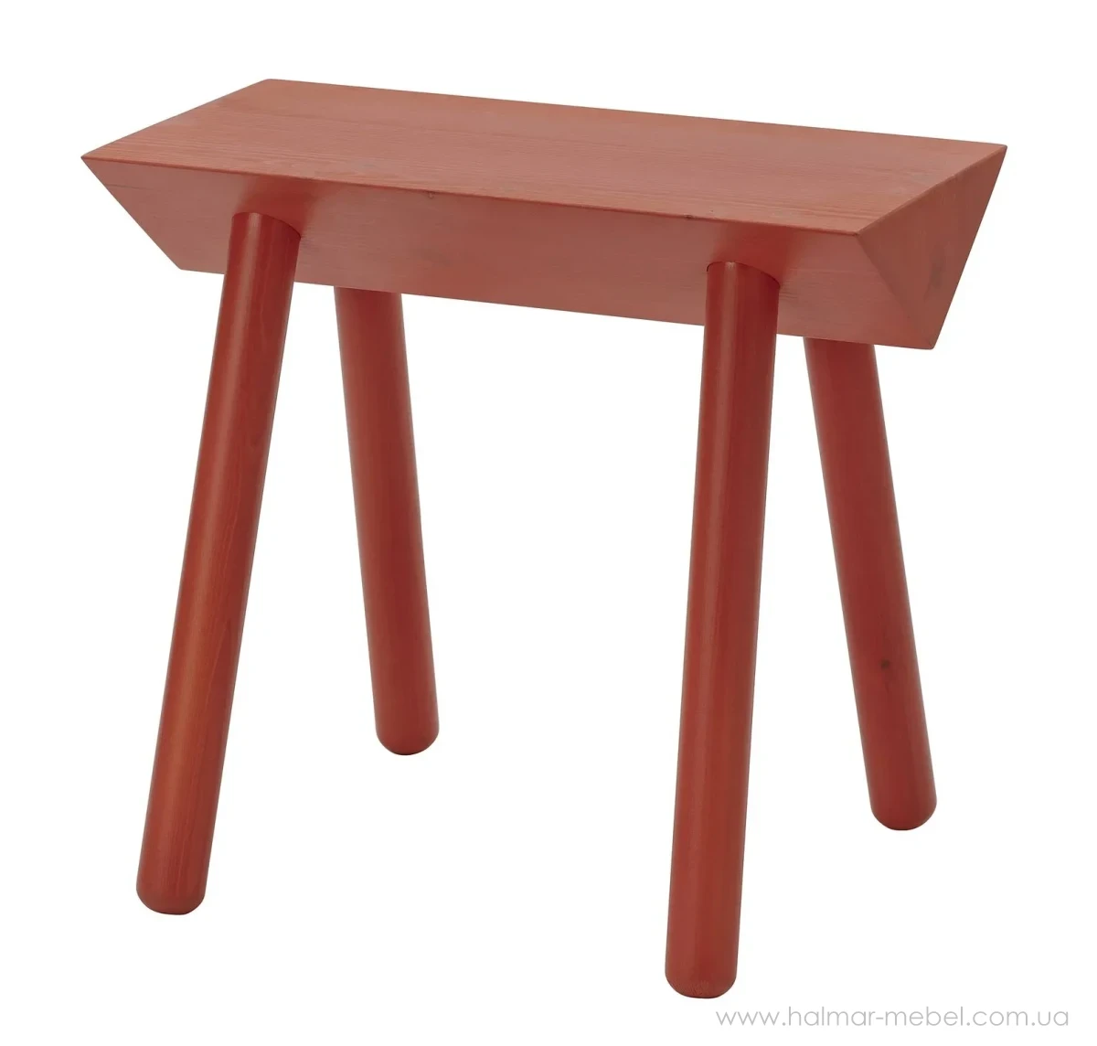 Табурет OMMJÄNGE IKEA оранжево-червоний - стильний та практичний предмет меблів, який можна використовувати для сидіння або як підставку. Конструкція табурету виконана з масиву дерева, включає міцні ніжки і жорстке сидіння оригінальної форми.