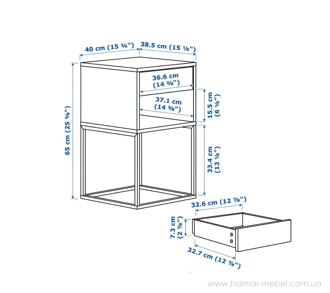 Тумба приліжкова VIKHAMMER IKEA чорна - лаконічна та практична модель в стилі лофт. Конструкція тумби складається зі сталевого каркаса і корпусу, всередині якого знаходиться відкрита ніша і висувна шухляда. Вбудована функція тихого закривання забезпечує м'який і безшумний рух шухляди.