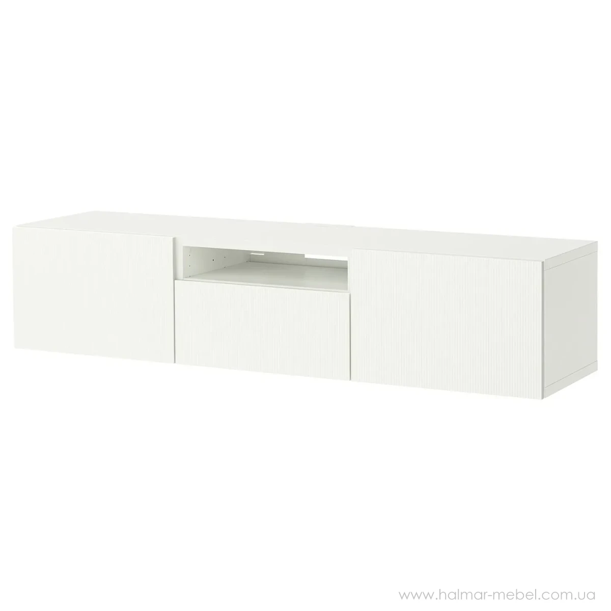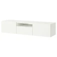 Тумба під телевізор BESTÅ IKEA - приваблива пропозиція для сучасної вітальні. Ідеально підходить для телевізорів із діагоналлю до 72 дюймів. Конструкція тумби складається з корпусу з 2-а закритими відділеннями, висувної шухлядки та відкритої ніші. Тумбу можна встановити на підлогу або закріпити на стіні. Технічні отвори в задній стінці допомогають приховати кабелі телевізора та інших пристроїв. Фасади відкриваються за допомогою ручок, які можна придбати окремо. Запропонований асортимент кольорових версій дозволяє вибрати кращій варіант для вашого інтер'єру.