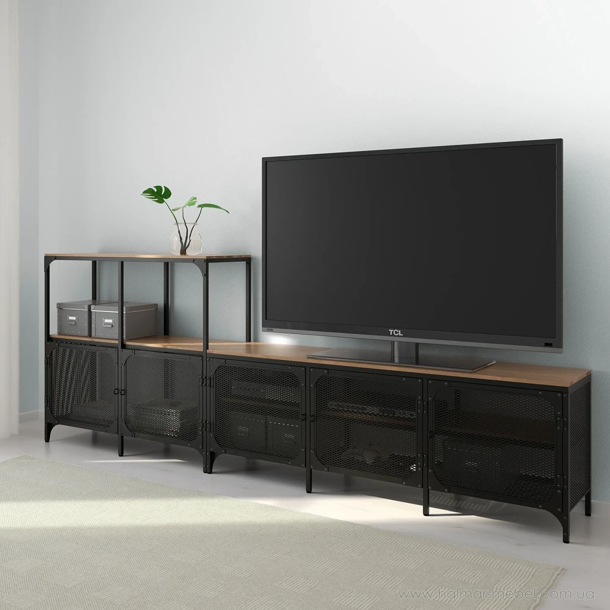 Тумба під телевізор FJÄLLBO IKEA 250х95 чорний – цікава пропозиція для сучасного інтер'єру. Його конструкція включає тумбу з 3-ма дверцятами і стелаж з 2-ма дверцятами і відкритою нішою. Поєднавши тумбу з іншими елементами серії FJÄLLBO IKEA, ви можете стильно та функціонально облаштувати приміщення.